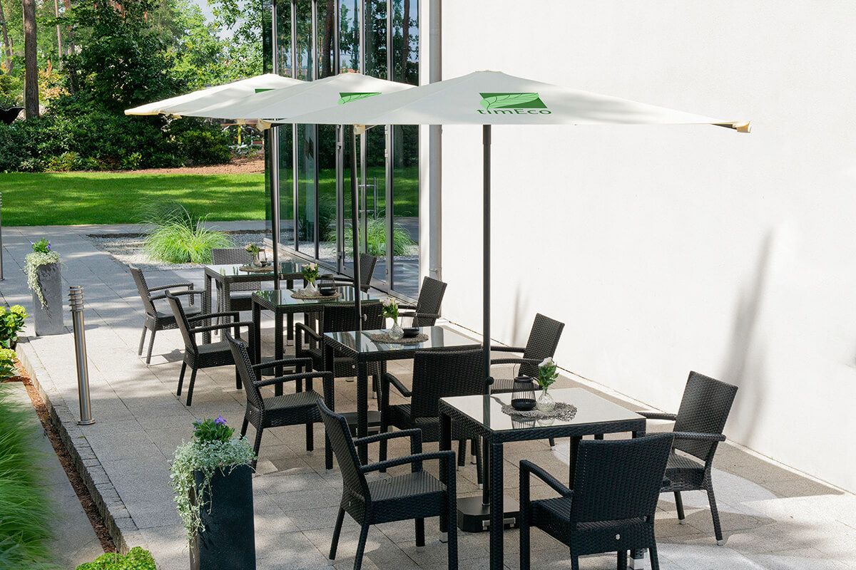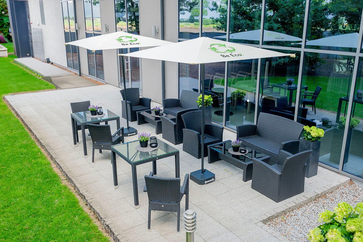 All parts of our parasols are recyclable (aluminium frame, polyester and acrylic covers, polypropylene parts)