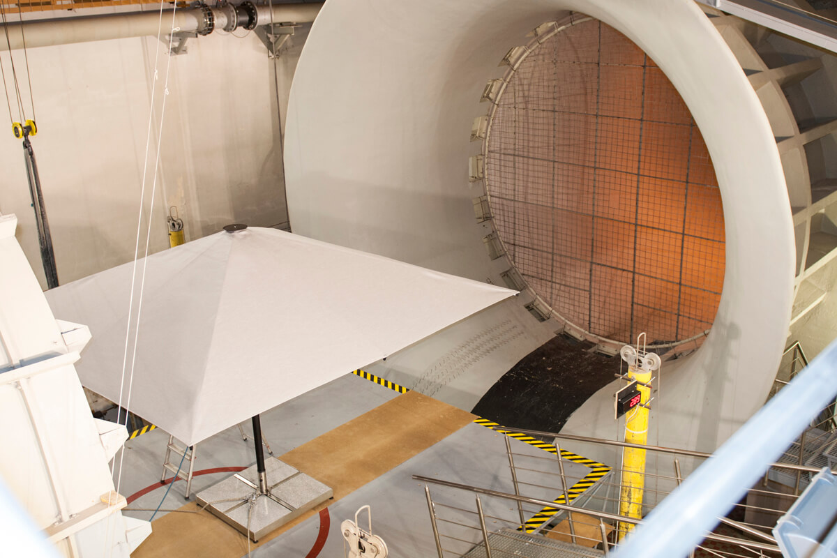 the fabrics used to produce the canopies of our umbrellas are tested, among others,