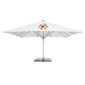 It all depends on what is your desired effect. Promotional and commercial parasols are most frequently printed with a company logo or a logo combined with an advertising slogan. If the parasol is to be situated right at your business premises, it may serve as an invitation to take advantage of your services. It is also possible to print graphics with a logo integrated into it. In our offer you can also find beach parasols.