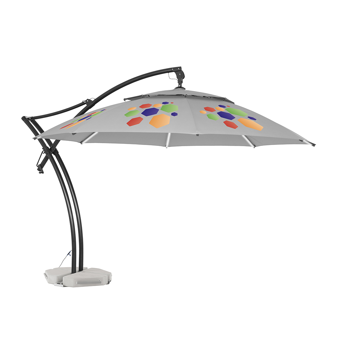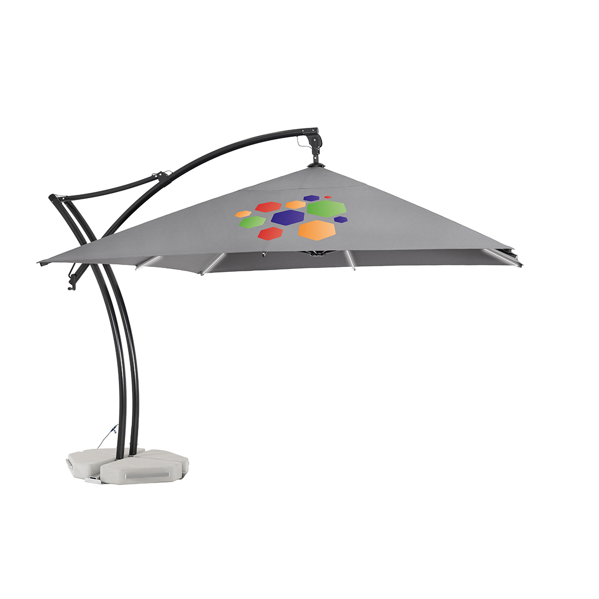 - Adjustable canopy angle – Ibiza Plus LED lighting parasols feature an innovative canopy attachment system that allows the canopy to be adjusted to the current position of the sun.