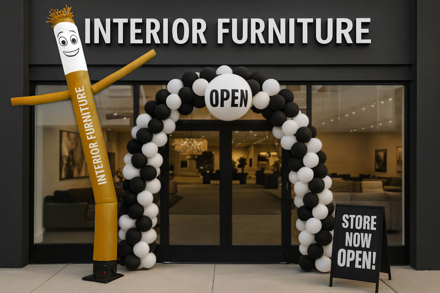 The customisation does not end there. The Air Dancer can be equipped with additional elements such as hair or ribbons at the ends of its arms, which emphasise the movement and dynamism of the advertisement. Such details make the Air Dancer look more realistic and impressive.