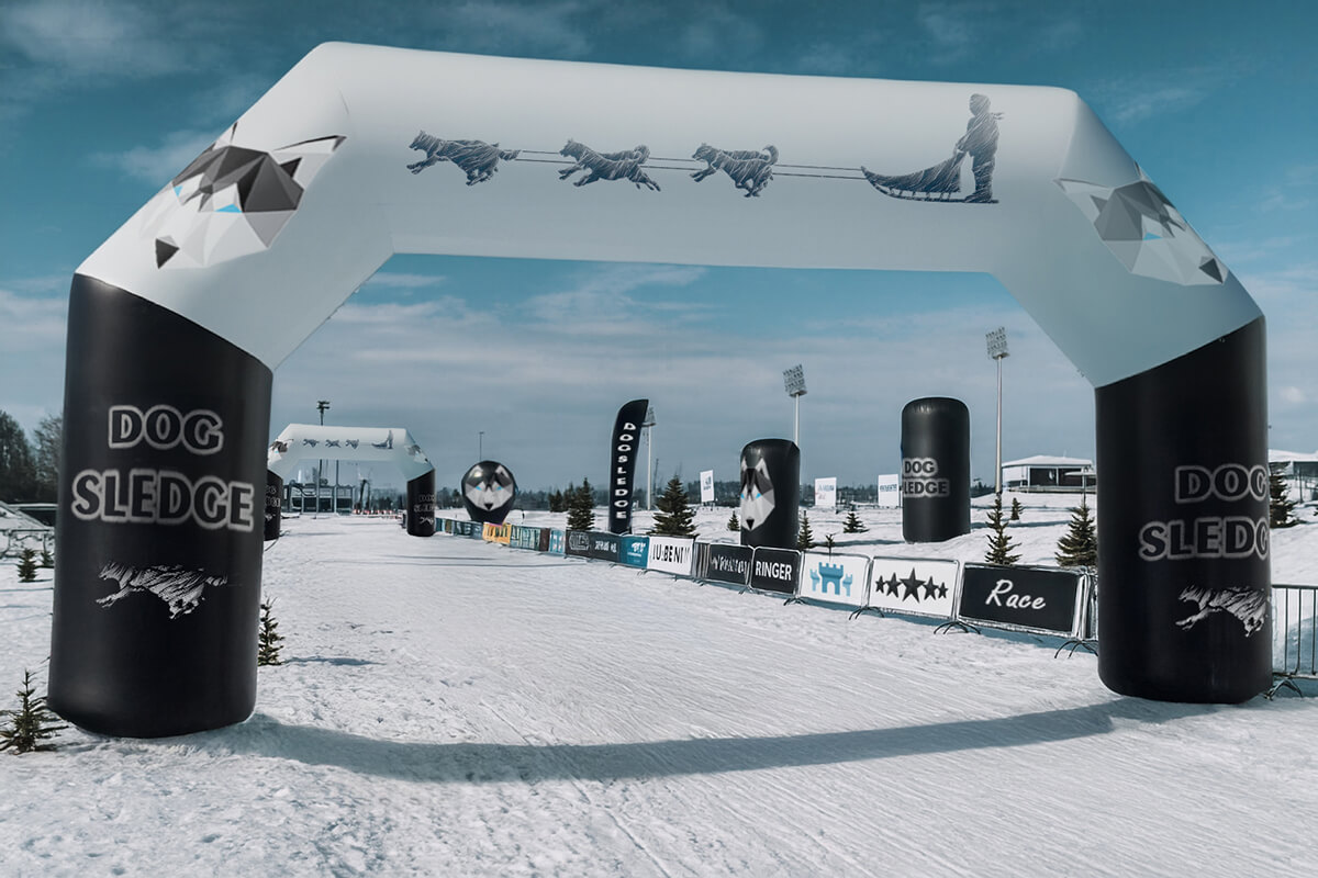 The AirBlock custom inflatable arch has been designed for outdoor events where reliability, fault-free operation and complete control over image are important. Thanks to its constant pressure design, a single air filling is enough to keep the custom inflatable arch stable and aesthetically pleasing throughout the event – without the risk of collapse, the need for re-inflation or noise from the equipment. This solution eliminates the need for a permanent connection to the mains, which means complete energy independence – particularly important where access to power is limited or impossible.