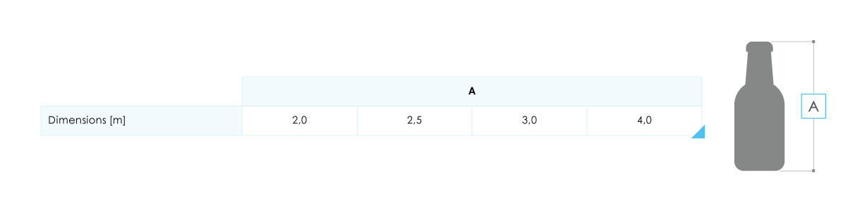 Height:2 m, 2,5 m, 3 m, 4 m