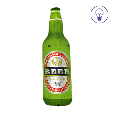 The gas-tight custom inflatable bottle can be additionally equipped with a wooden base, which increases stability and safety, minimising the risk of tipping over or damage during display. And thanks to optional internal LED lighting, the marketing message is also visible 24/7.