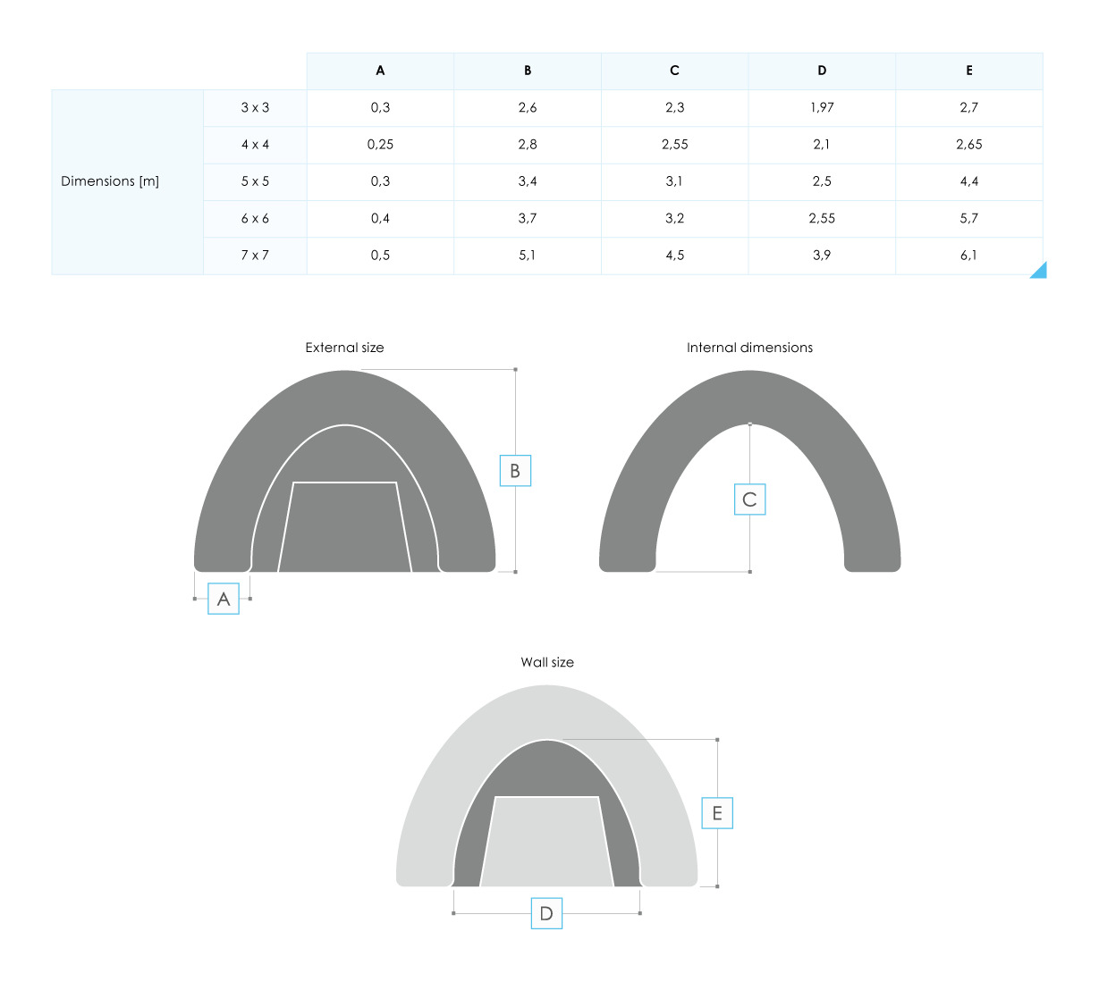 Size:3 x 3 m, 4 x 4 m, 5 x 5 m, 6 x 6 m, 7 x 7 m