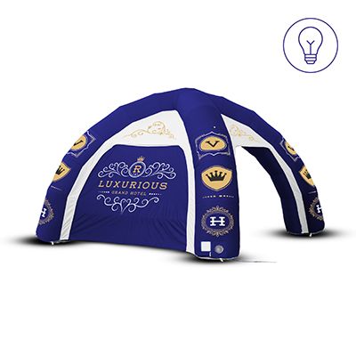 To make full use of the advertising space, the custom inflatable tent can be completely branded from the roof to the walls to the legs. A big advantage is the ability to replace the walls themselves in the event of a change in marketing campaign or logo modification, without having to replace the entire tent.