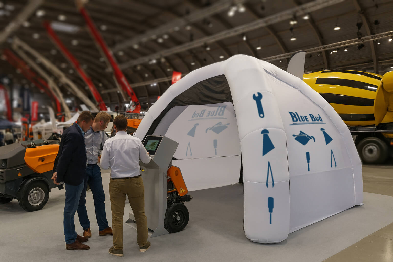 The AirFlow inflatable spider tent uses a fan design in which a dedicated blower constantly maintains optimal pressure throughout the structure. This makes setting up the tent extremely easy and requires neither specialised tools nor a large team – just 1 or 2 people are enough to get it ready for use in just a few minutes. What is more, even the largest inflatable spider tent in our range takes up surprisingly little space when folded, which greatly facilitates transport and storage.