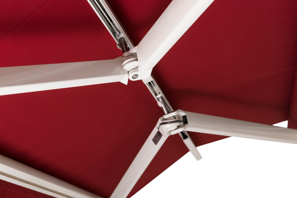 The awning structure is an ideal way to provide even more protection from the sun or rainfall, as the two-stage inclination angle of the awning allows even better drainage of water from the cover. This increases the useful life of the frame and reduces the risk of damage to the fabric, particularly associated with water that does not accumulate on the cover.