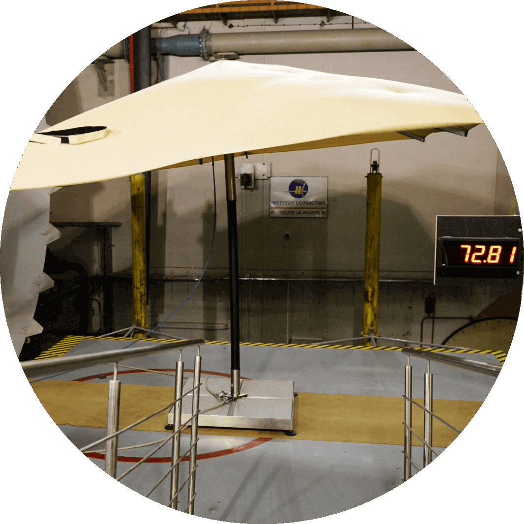 Strong, aluminum hinges and additional clippings make the Atlantic parasol exceptionally durable and extremely attractive. What is also worth noting, is the sheathing stretching system, unheard of in other parasols. For the Atlantic parasol sheathing we use acrylic and polyester fabrics.