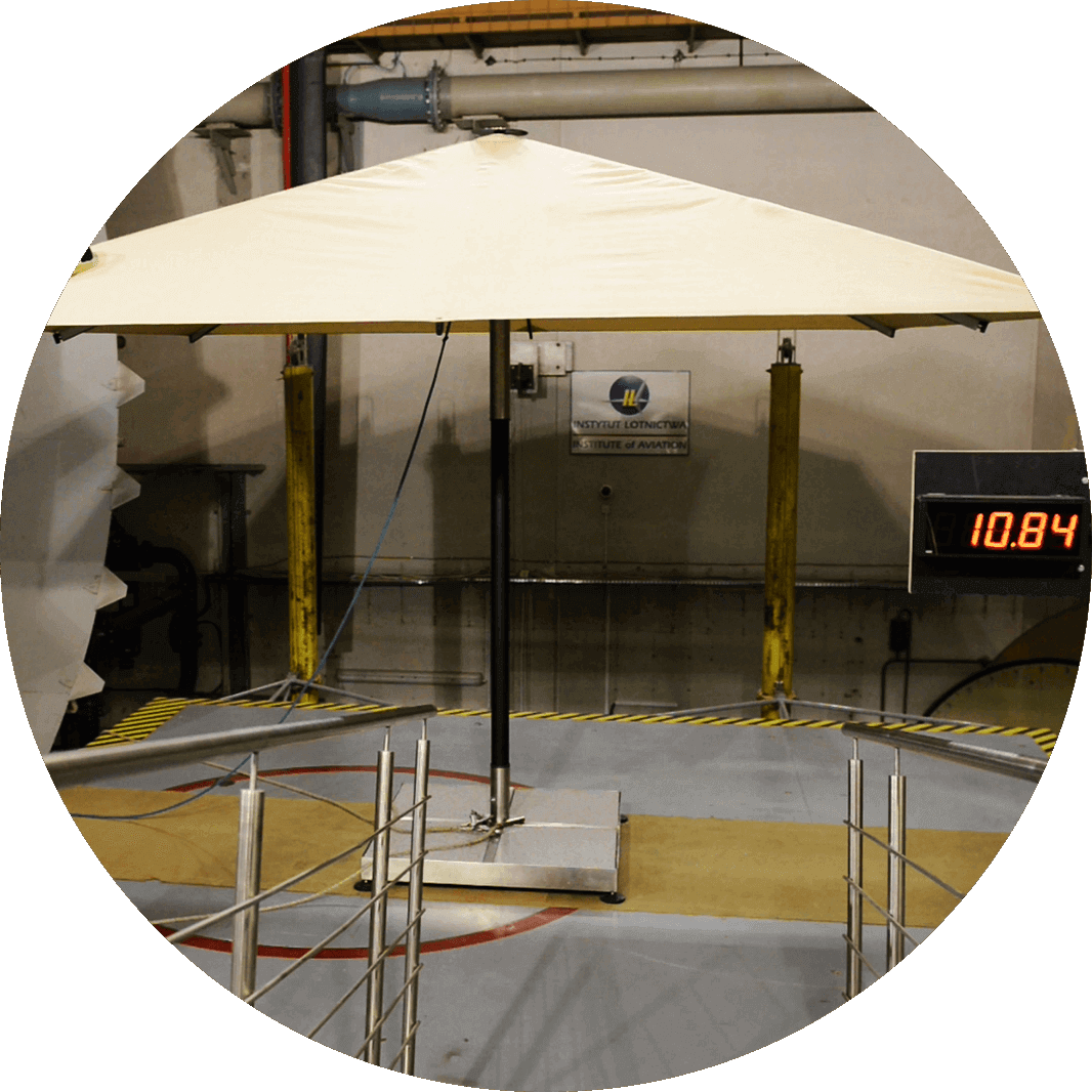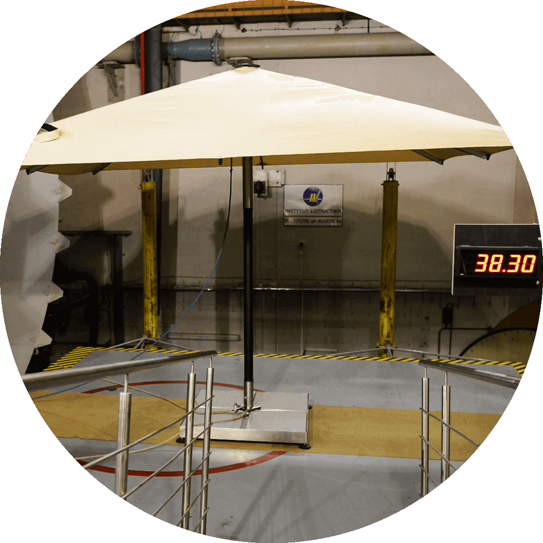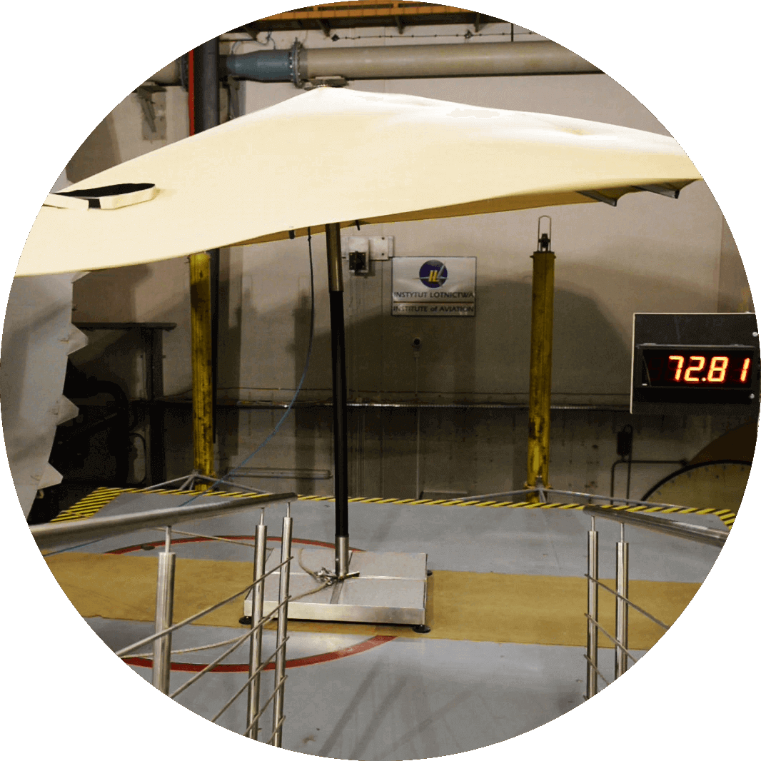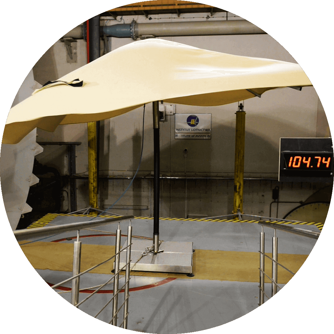 Strong, aluminum hinges and additional clippings make the Atlantic parasol exceptionally durable and extremely attractive. What is also worth noting, is the sheathing stretching system, unheard of in other parasols. For the Atlantic parasol sheathing we use acrylic and polyester fabrics.