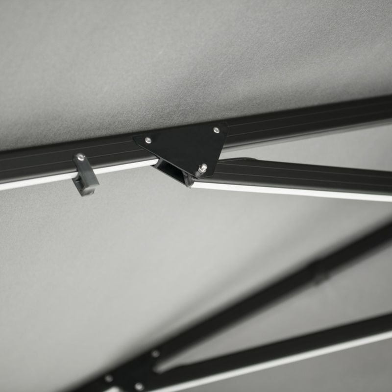 Atlantic parasol comes in three possible canopy shapes – octagonal, square and rectangular. Sizes vary from 3 to 5 meters and the square-shaped canopy line offers the greatest variety of them. Atlantic parasol’s frame is made of anodized aluminum, all in mysterious, interesting black colour. Polyester canopy in a special, dynamic shape, serves as a perfect space for branding and individualization of the product.