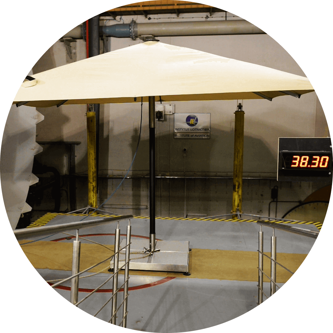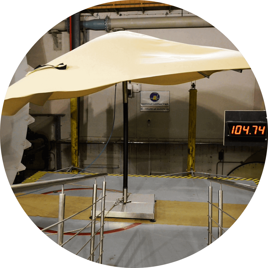 Strong, aluminum hinges and additional clippings make the Atlantic parasol exceptionally durable and extremely attractive. What is also worth noting, is the sheathing stretching system, unheard of in other parasols. For the Atlantic parasol sheathing we use acrylic and polyester fabrics.