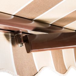 The Barcelona terrace awning is characterised by an inclination angle of 5 to 60 degrees. The width of the awning can reach 12 metres, with an outreach of up to 4 metres. The Barcelona awning is mounted to the façade of the building while the colour of its frame can be white, grey, cream or brown. If you need an awning for 3.5 m, this is the ideal model for you.
