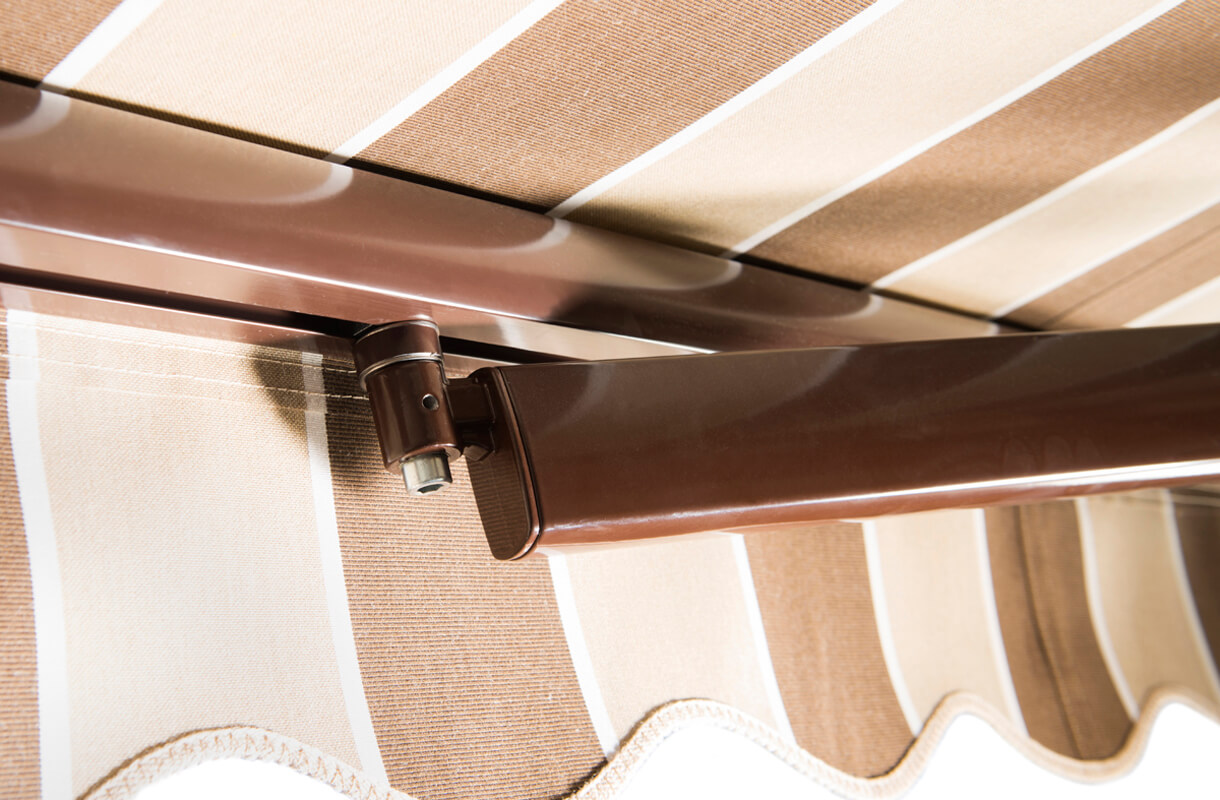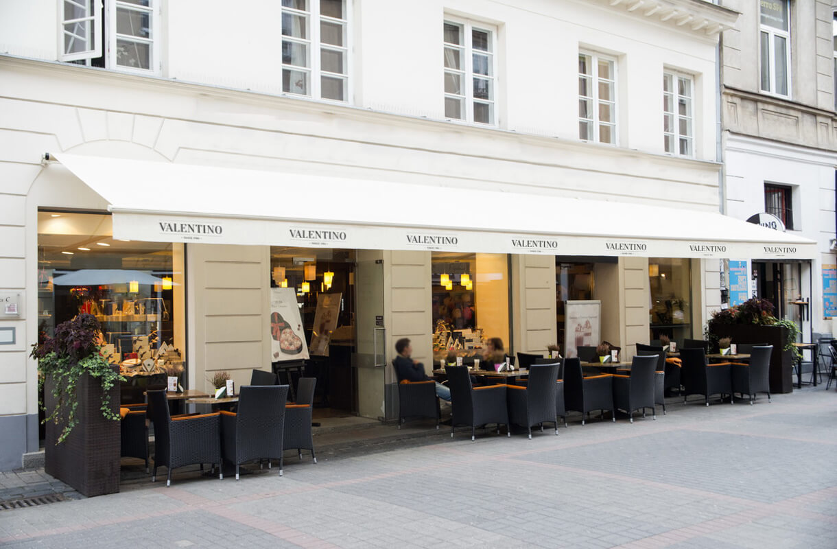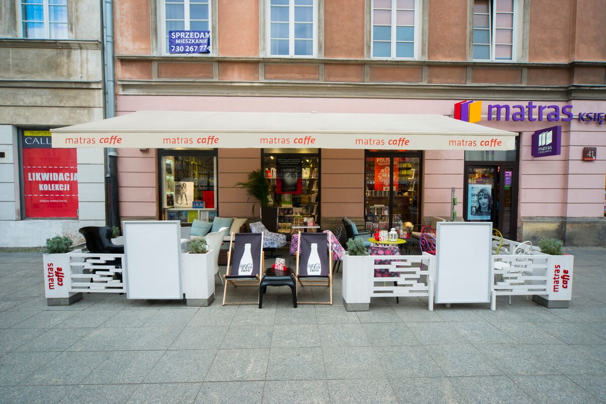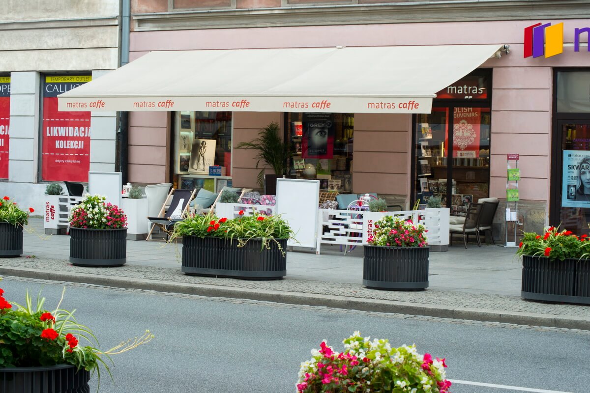 They adorn picturesque towns in Italy and Spain. In Poland, their aesthetic qualities and practical function have also been recognised. Awnings are outdoor covers that protect against the sun, provide pleasant shade and also serve as an outdoor decoration for restaurants, bars, hotels, cafés or shops. The Barcelona terrace awning is an option for all property owners looking for a customised decoration for their summer garden. Using state-of-the-art technology, we imprint it with a graphic of customer’s choice, a company logo or brand name. This allows the patio awning to serve as an outdoor advertising medium. The acrylic fabric cover guarantees a high degree of resistance to the impact of external factors while the crank opening of the awning ensures easy handling.