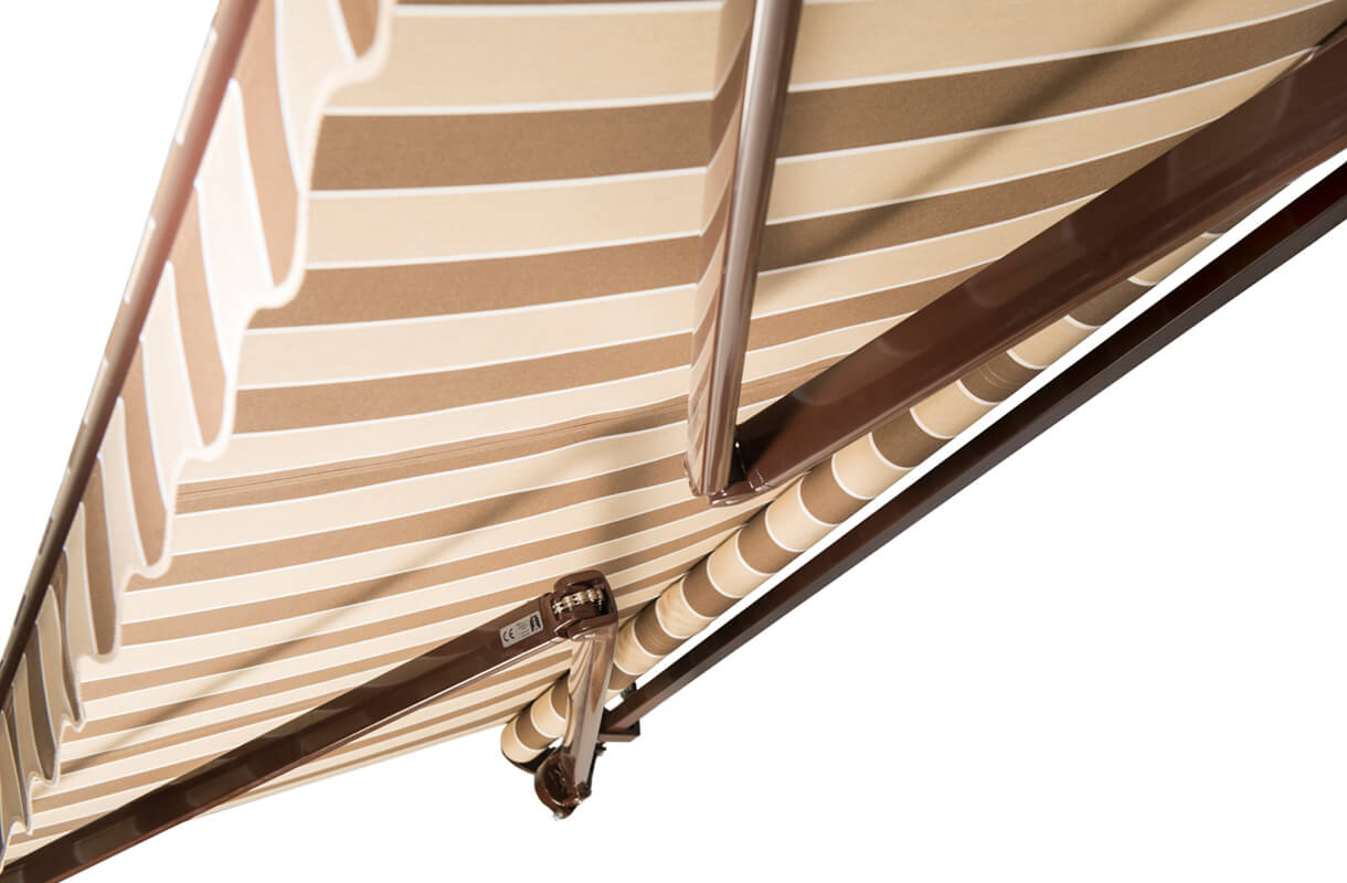 Options:Electric motor, LED lighting in the arms, Protective roof, Steering remote, Telescopic supports to reinforce the awning structure – cannot be used with the weather station, Weather station