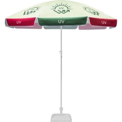 Beach parasol offered by Litex Promo is a perfect solution for marketing campaigns in typical summertime settings. Those are plenty – it is not only beach beer gardens, but also diverse mass events organized at the sea shore, such as concerts, special media events or music festivals. Nowadays it is also frequent for the cities to have a special area covered in sand, meant to function as beaches. For further strengthening such scenography, beach parasols are welcome. It is a perfect way to build a brand, by boosting its visibility in such places, which are visited by the masses during summertime.