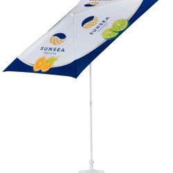 Beach parasols offered by Litex Promo are smooth and elegant. This type of parasol comes in two possible canopy shapes – octagonal and square. We offer a range of sizes from 1.25 up to 2 meters. This model is very easy to set up, with steel frame coming in bright, classic white colour. The canopy is made of polyester which makes the product resistant to weather conditions, which can be tough on the beaches. It is even more important when it comes to branding – which usually means printing the logo, slogan and other visual identity elements on the canopy. Litex Promo ensures the highest quality of the printout, using digital or screen printing technology, focusing on the long lasting vivid colour and clear printing of logo, even the small, distinctive details being thus visible.