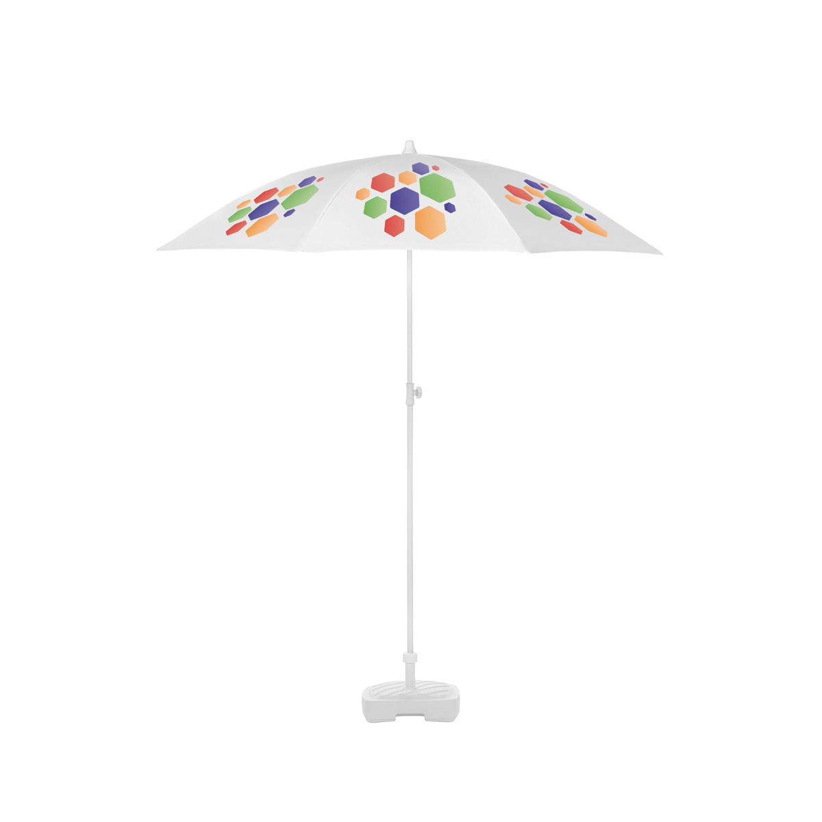 Beach parasols offered by Litex Promo are smooth and elegant. This type of parasol comes in two possible canopy shapes – octagonal and square. We offer a range of sizes from 1.25 up to 2 meters. This model is very easy to set up, with steel frame coming in bright, classic white colour. The canopy is made of polyester which makes the product resistant to weather conditions, which can be tough on the beaches. It is even more important when it comes to branding – which usually means printing the logo, slogan and other visual identity elements on the canopy. Litex Promo ensures the highest quality of the printout, using digital or screen printing technology, focusing on the long lasting vivid colour and clear printing of logo, even the small, distinctive details being thus visible.