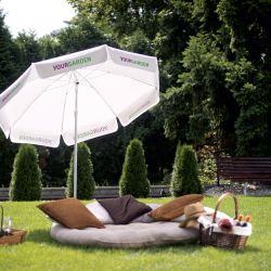 Beach parasols offered by Litex Promo are smooth and elegant. This type of parasol comes in two possible canopy shapes – octagonal and square. We offer a range of sizes from 1.25 up to 2 meters. This model is very easy to set up, with steel frame coming in bright, classic white colour. The canopy is made of polyester which makes the product resistant to weather conditions, which can be tough on the beaches. It is even more important when it comes to branding – which usually means printing the logo, slogan and other visual identity elements on the canopy. Litex Promo ensures the highest quality of the printout, using digital or screen printing technology, focusing on the long lasting vivid colour and clear printing of logo, even the small, distinctive details being thus visible.