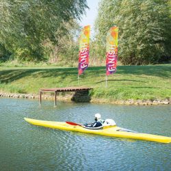 Beachflags (or winders) are present at almost all sporting and corporate events. A flag flying in the wind with vibrant colours and attractive graphics is sure to attract the attention of your customers. Beachflags Angle Alu are mounted on mobile or fixed bases and reach heights of 2 to 5 m. The frame is made of anodised aluminium which is lightweight but extremely resistant to the impact of external factors. A knitted fabric was used for production of the sheathing which demonstrate resistance to UV radiation, rain, wind and low temperatures. Winders are characterised by easiness of assembly and transport and can be used multiple times during promotional campaigns, events, sporting and corporate events, trade fairs and conferences. They work perfectly both indoors and outdoors.