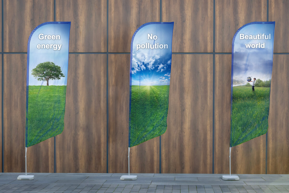 Advertising beachflags gain their individual character thanks to the possibility of any personalisation of the flag. We offer graphics created in accordance with the customer’s design, enriching the winders for the event with a company logo and name. We guarantee high durability of the overprint and perfect reproduction of the smallest details. The overprint is made using the latest technology – it is resistant to abrasion and fading.
