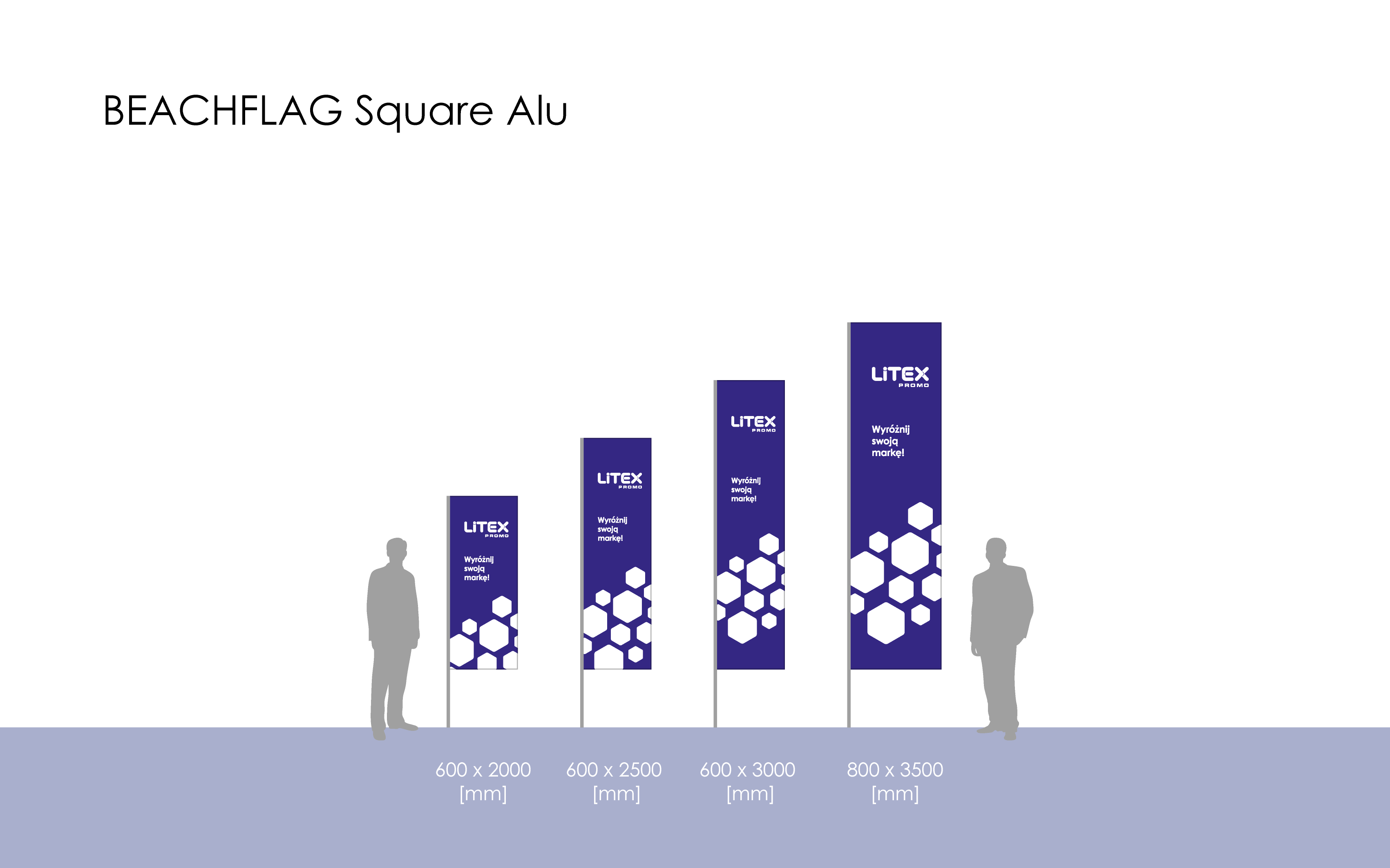 Beachflags Square Alu are simple advertising tools that can be used at promotional events, sporting events, corporate events, trade fair exhibitions and as part of product or company advertising at the point of sale. The winders are made of knitted fabric showing high resistance to external factors, i.e. sunlight, wind, rain and low temperatures.