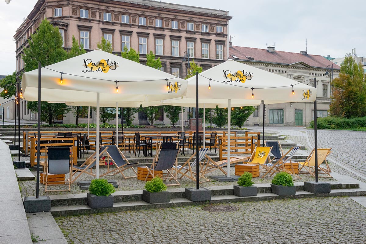 Classic Line is one of the commercial parasols offered by Litex Promo for advertising purposes. The elements of brand and visual identification printed on the canopy of the parasol make an effective tool of building the brand’s visibility and creating positive associations between the brand and certain services, also a particular vibe or atmosphere, all contributing to the better sales of the product in question.