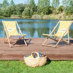 - The wooden deckchair offers a choice between a single-sided or double-sided cover. This allows you to customise the advertising message of the deckchair to suit your needs.