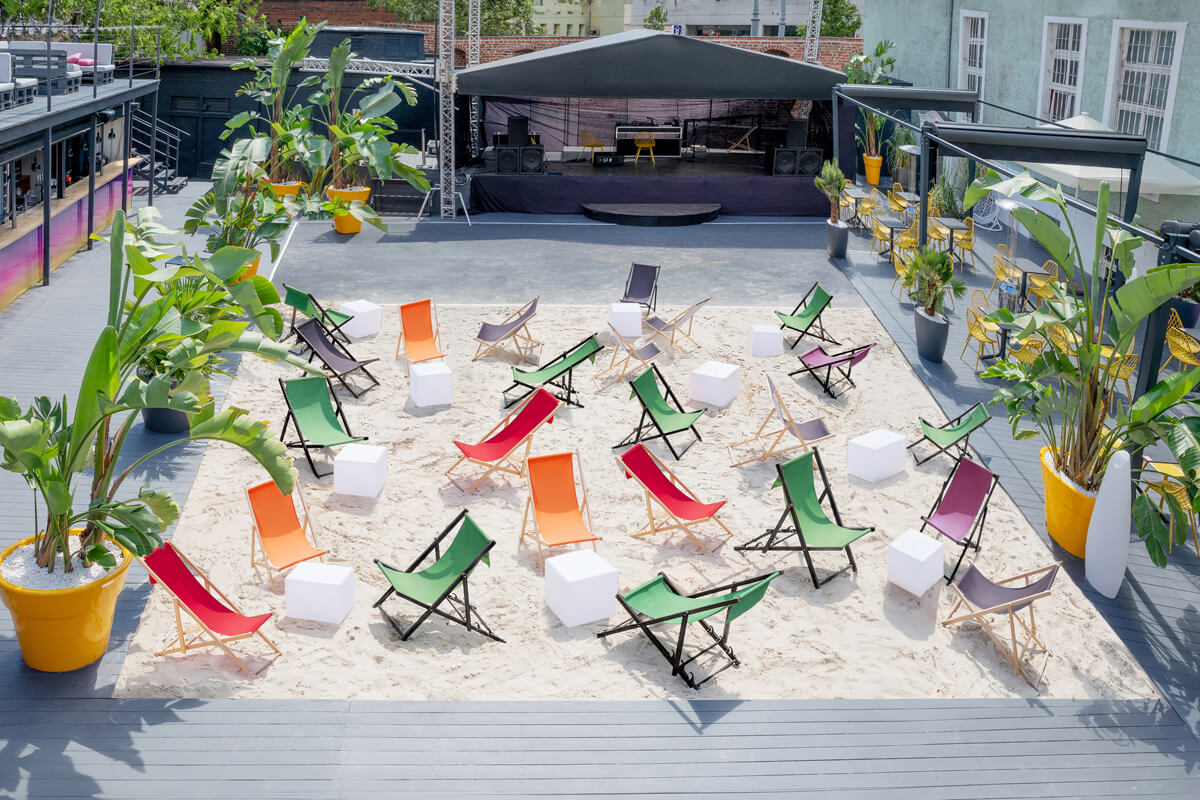 - The easy-to-change seat cover system allows you to customise the deckchair to your preferences. Replacing the seat is just a few simple steps that you can do yourself. This not only makes it possible to quickly adapt the advertising medium to a given promotional campaign, but also allows the furniture to remain in visually appealing condition for many seasons.