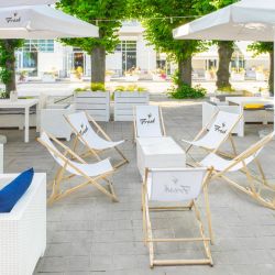 The easy-to-change seat cover system allows you to customise the deckchair to your preferences. Replacing the seat is just a few simple steps that you can do yourself. This not only makes it possible to quickly adapt the advertising medium to a given promotional campaign, but also allows the furniture to remain in visually appealing condition for many seasons.