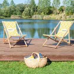 The wooden deckchair offers a choice between a single-sided or double-sided cover. This allows you to customise the advertising message of the deckchair to suit your needs.