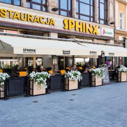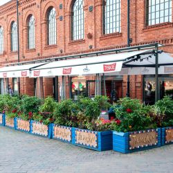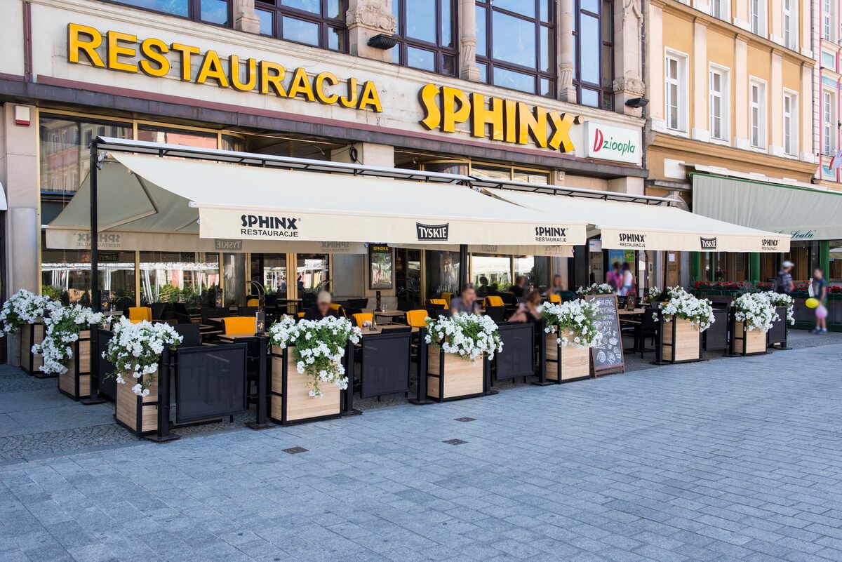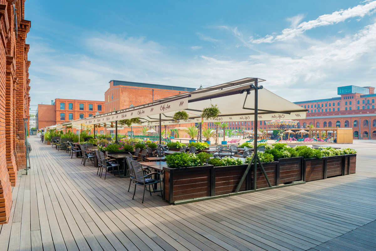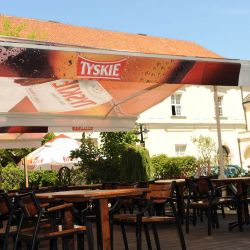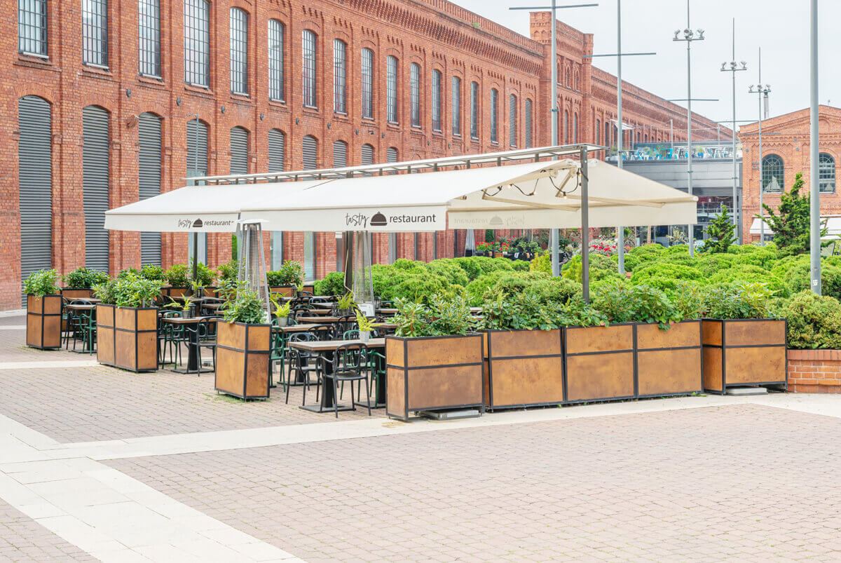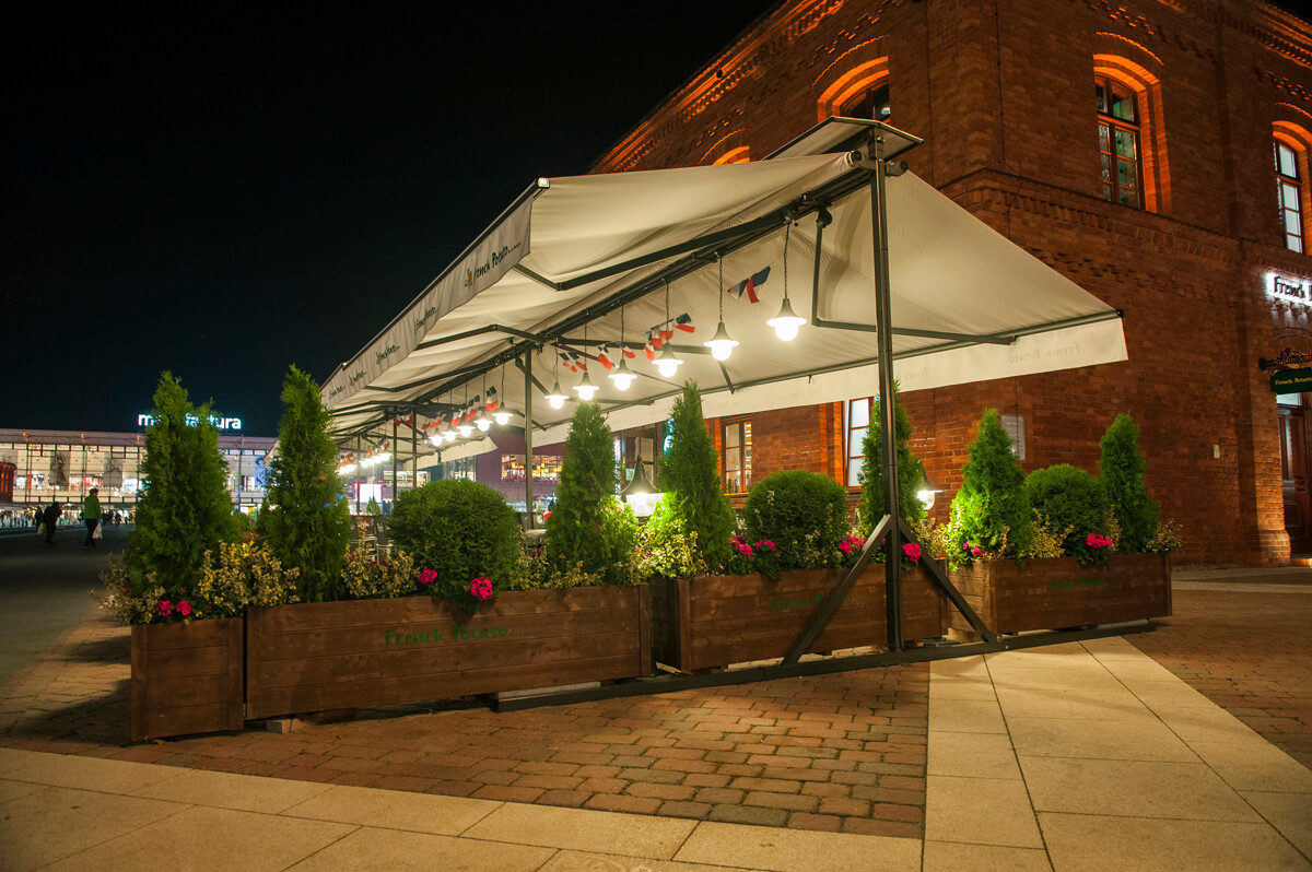 The Duetto Classic awning consists of 2 retractable awnings with a cover made of acrylic fabric, characterised by high resistance to external factors. It provides effective protection from the sun and rain. It provides pleasant shade, increasing the comfort of your guests. The frame is available in 3 colour options – white, cream and brown. Its additional advantage is the possibility of personalisation. We offer the possibility to print it according to your individual design. Duetto Classic serves not only a practical but also an advertising function.