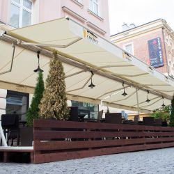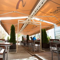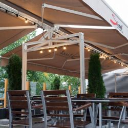 They are an increasingly popular type of awning chosen by our customers. They prove ideal in urban spaces to complement the summer gardens of establishments, i.e. restaurants, bars and cafés. Duetto Classic is a mobile freestanding awning, allowing greater possibilities for its use and the development of outdoor space in the catering, hotel and restaurant sectors. It is an alternative to traditional umbrellas but demonstrates higher strength and resilience, determined primarily by its stable construction.