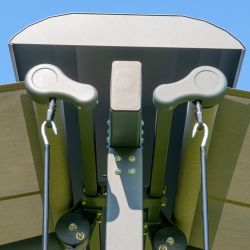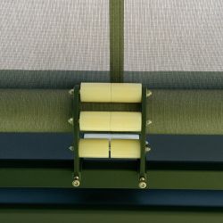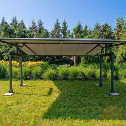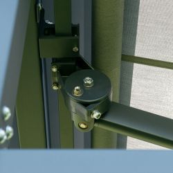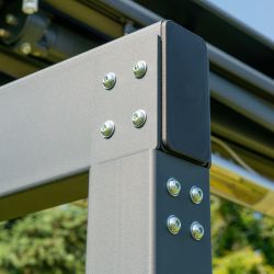 All elements of the support structure have been galvanised, which significantly increases the corrosion resistance of the steel components, and a powder-coated canopy is used on top of the awning.