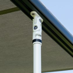 Options:Electric motor, Illuminated logo on valance, LED lighting in the arms, Steering remote, Telescopic supports to reinforce the awning structure – cannot be used with the weather station, Weather station
