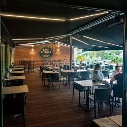 The modular design of the awning allows for easy expansion and modification, adapting to the changing needs of the restaurant garden.