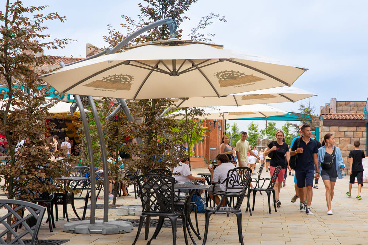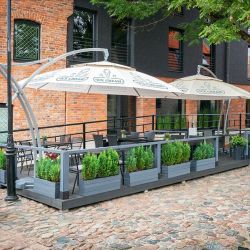 We would like to present Litex Promo Ibiza parasol line for commercial and advertising application. Its main feature is a distinct design – a dynamic off-centre frame makes Ibiza model stand out of the rest of the more classic branded parasols. Ibiza parasol comes in two version of the canopy shape – octagonal and square. The size of octagonal shape varies from 3.5 meters to 4.2 meters. Version with square canopy is available in 3.5 meters size. The parasol’s frame is made of aluminum. As for additional features, there is a possibility to add lighting to Ibiza parasols, which makes this model perfectly suitable for using at nights. The canopy is made of polyester cloth, on which any elements of brand can be printed.