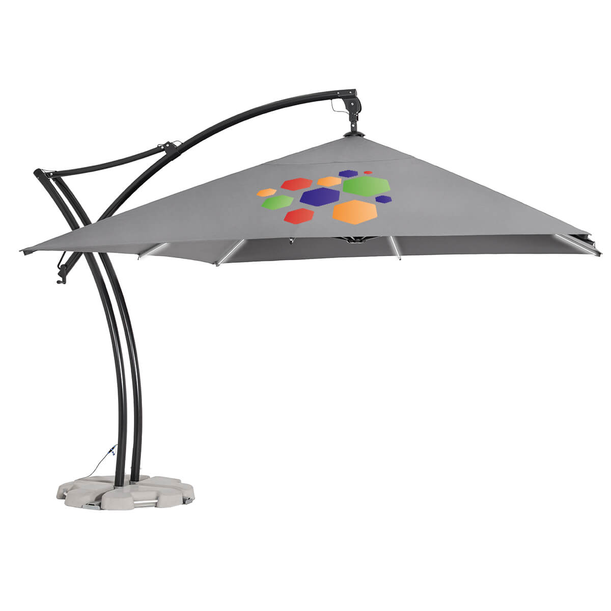 The high-quality 220g/m2 cover combined with state-of-the-art printing technology ensures exceptional durability and colour intensity over a long period of time. This keeps the print looking fresh even through months of full sunlight. All this makes the Ibiza Plus side leg umbrella an effective advertising tool that builds brand recognition and identity.