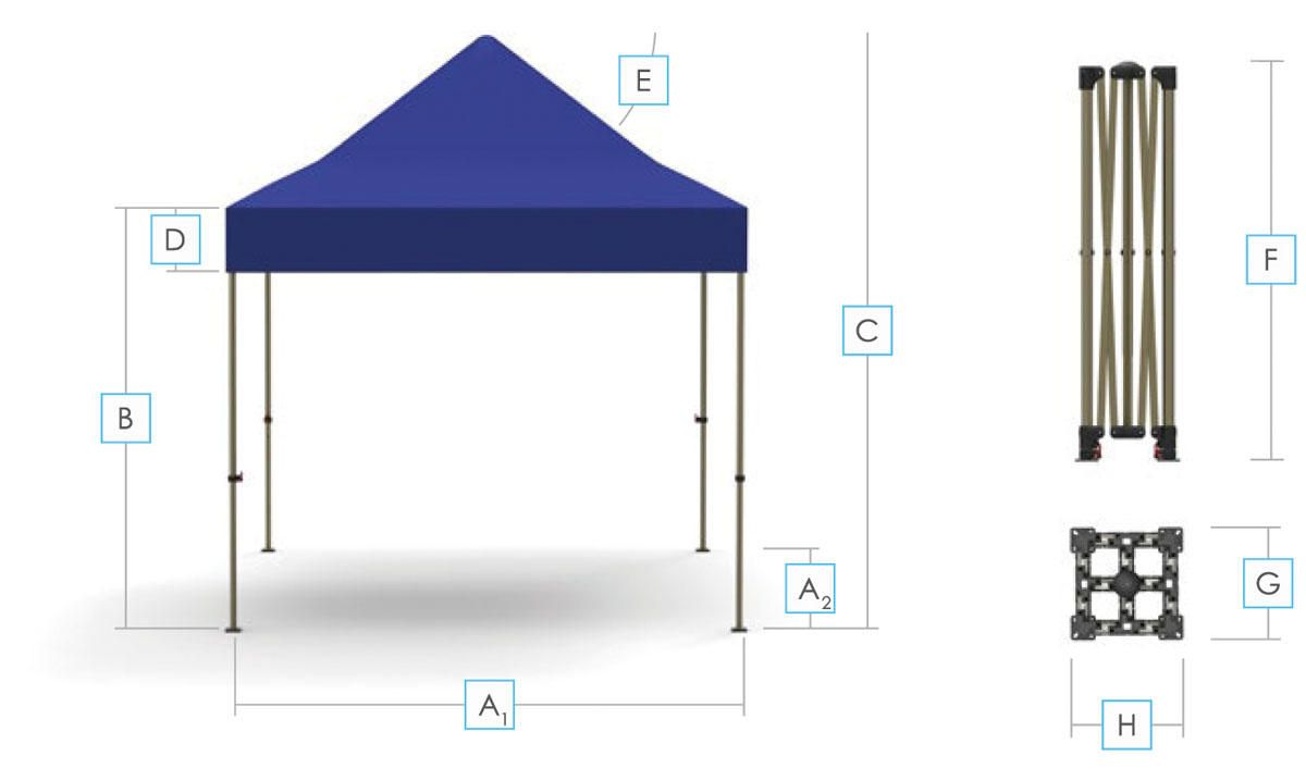 The scissor construction used in the Plus model allows for quick assembly of the tent without the use of tools or specialist assistance. Thanks to the locking system, it is possible to easily and safely adjust the height to the user’s current needs.
