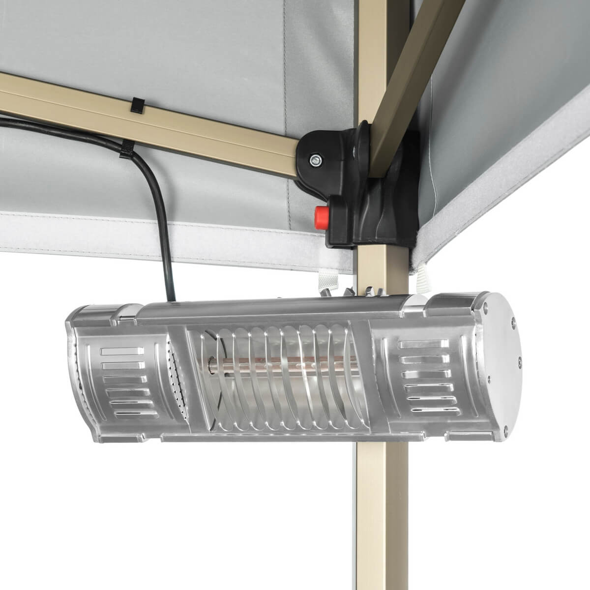 The tent frame is designed from champagne-coloured hexagonal aluminium profiles, combining durability and elegance. The anodised coating provides protection against scratches and maintains an aesthetic appearance even during intensive use.