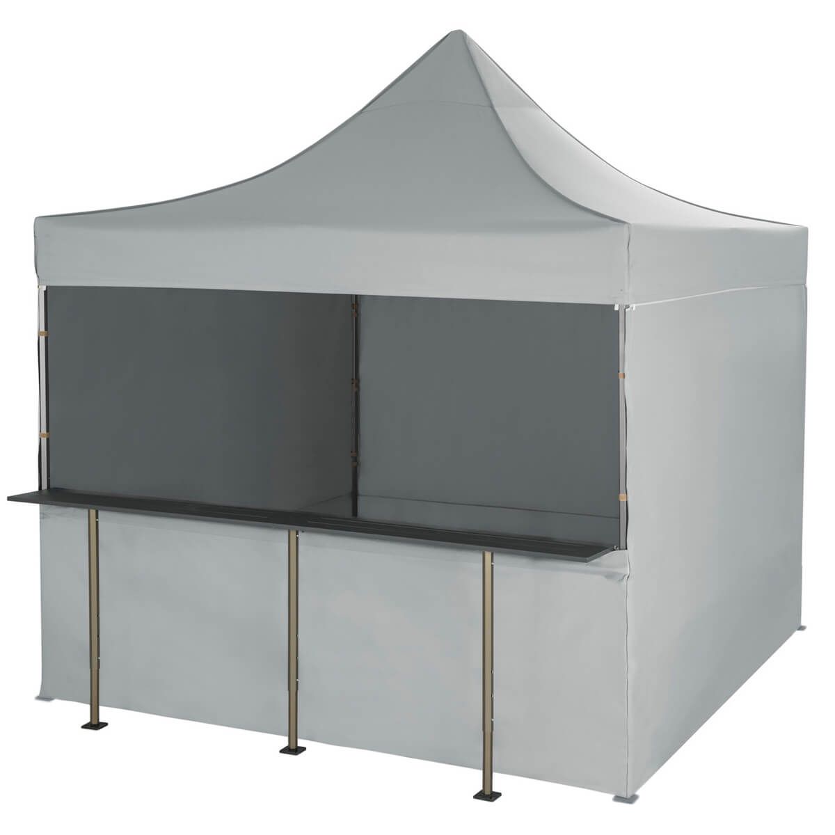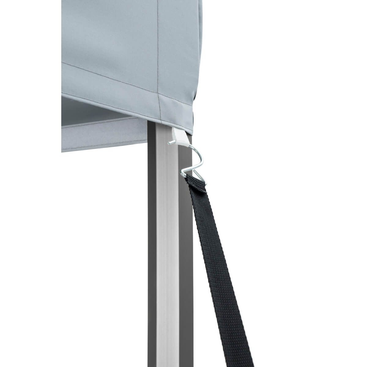 The tent frame is based on solid, hexagonal profiles made of silver-coloured anodised aluminium, which provide an optimal combination of low weight and exceptional durability. The frame joints are designed from grey polypropylene with high mechanical resistance, which provides additional stability to the entire structure. The materials used are resistant to corrosion and adverse weather conditions, which, combined with proper maintenance, ensures that the Commercial market stall retains its aesthetic appearance and full functionality for many years.