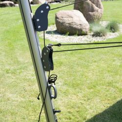 This product is available in various sizes and shapes. Thanks to a unique opening system (a handle with winding system), it allows for the mast angle of almost 75 degrees and variable shade sail angle. What is more, the construction can be additionally equipped with lightning, which makes it perfect in the evening or at night.